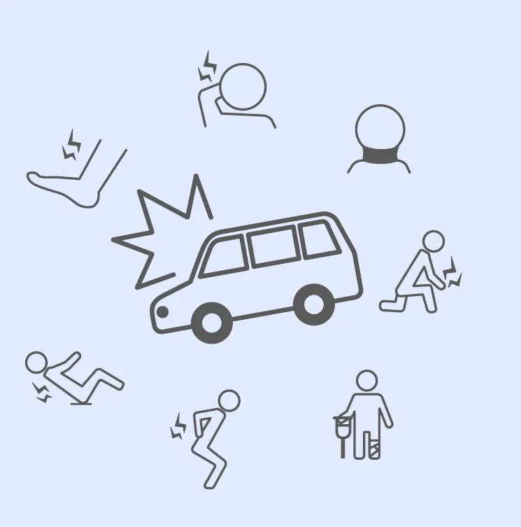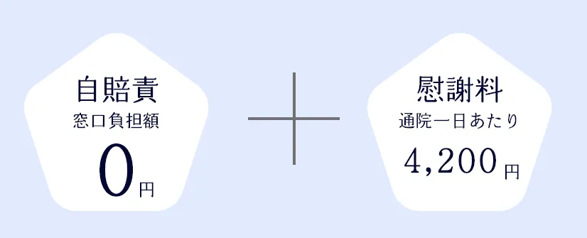 当院では⾃賠責保険にて交通事故によるケガを治療いたします。患者様の治療負担⾦は0円です。また、⾃賠責保険で通院された場合、通院1⽇あたり4,200円の慰謝料を受け取ることができます(上限を決めるための計算⽅法があります)。⾃賠責保険には、ほかにも休業損害などの保障もありますので、保険会社への対応など分からないこともお気軽にご相談ください。